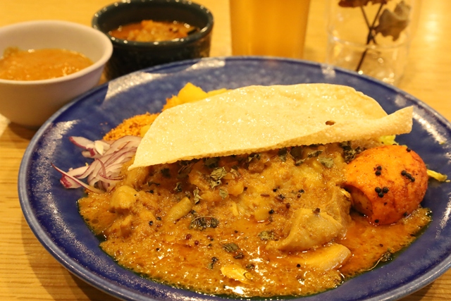 オプションの「ゆで卵マサラ」(100円)は、ぜひ追加していただきたいトッピングです。ゆで卵の甘みが加わることで、カレー全体のコクと深みが一段と増しました。より複雑で奥深い味わいを楽しみたい方には特におすすめです。