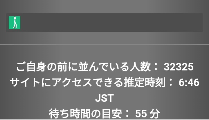 しかし、それでも何度も待機列に並び直すことになったのです。この事実から、単に早くログインするだけでは不十分で、朝7時前後のサーバーへの負荷が想像以上に高いことが分かりました。待機列から突然切断されたり、リロードによってさらに長い列に並び直す現象が起きているようです。