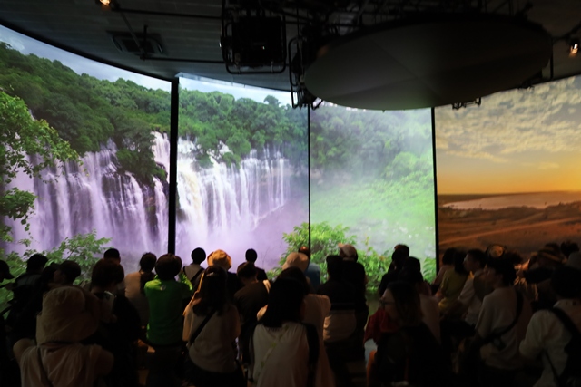 ここでは約50人ずつのグループで、10分ほどの映像を鑑賞します。後ろで立ち見もできますが、椅子に座ってじっくり見られるのはありがたいですね。