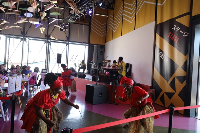 レストラン「IMBONDEIRO(イムボンデイロ)」では、ステージで演奏やダンスが披露されており、活気あふれる空間でアンゴラ料理とポルトガル料理を楽しむことができます。