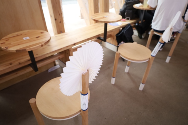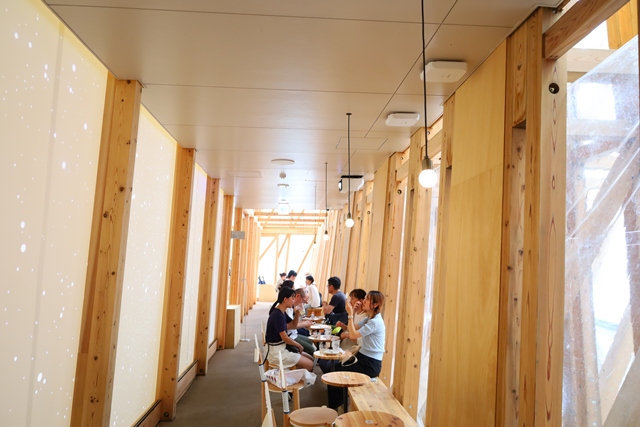 店内は、パビリオンと共通した白と木を基調とした、温かみのある優しい雰囲気。窓から差し込む自然光が心地よい空間です。