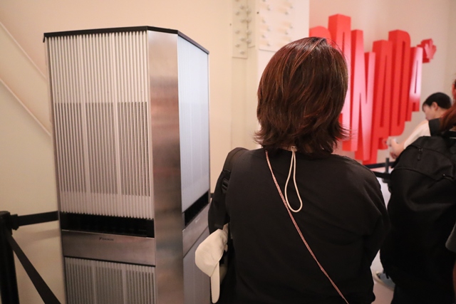 炎天下に並ぶのは大変ですが、パビリオンの前にはダイキンの大型エアファンが設置されており、涼しい風を送ってくれます。また、随所に椅子が用意されているのも嬉しいポイントです。私が訪れた際は、30分以内に入館することができました。