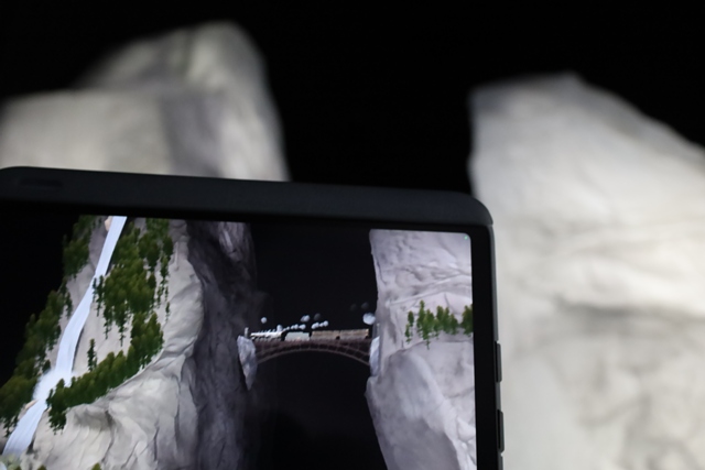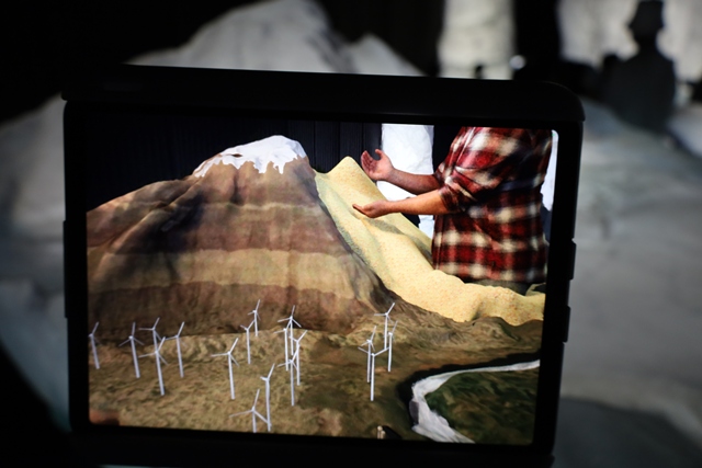 氷河にタブレットを向けると、カナダの美しい自然の風景がARで映し出されます。