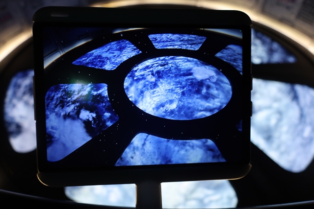 タブレットをかざすと、宇宙飛行士が目の前に現れ、まるで一緒に宇宙遊泳をしているかのような感覚に!