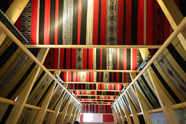 重さはなんと500〜700kg、制作には200人もの人々が3カ月を費やしたといいます。自然由来の染料で彩られた伝統的な模様は、温かみがあり、見る人を惹きつけます。