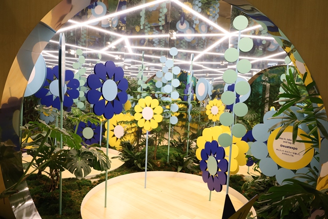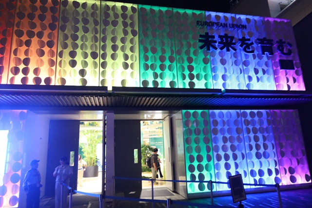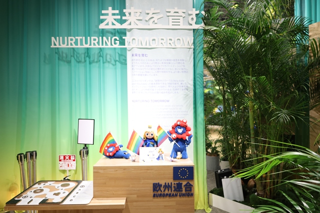万博の会場で穏やかでやさしい雰囲気をまとっているのが欧州連合(EU)パビリオンです。入口には「EUROPEAN UNION 未来を育む」と掲げられており、EUと日本の緊密な連携を表現しています。