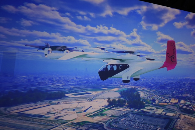 エンジンではなく電力で動く空飛ぶクルマは、音が静かで環境にも優しいとのこと。