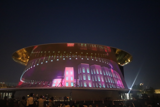 日本館の隣に位置するこの建物は、1970年の「太陽の塔」を彷彿とさせる、会場全体のシンボルです。実は、4月12日の万博開会式では、天皇、皇后両陛下もこのホールにご臨席され、天皇陛下は「未来の社会について考えることを願っています」とのおことばを述べられました。