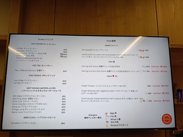 - 軽食は、日本では珍しい「塩漬けニシンの玉ねぎ添え」や、「ニュシン入りヒュッツポットおにぎり」といった、オランダらしいユニークなメニューも提供されていますが、午前中でほぼ完売します。
