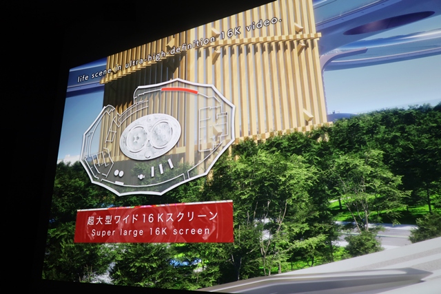ジオラマの奥にある大型モニターには解説映像が流れ、街を眺めていると、まるで自分がその未来にいるかのような気分になります。
