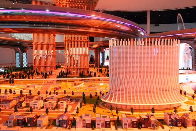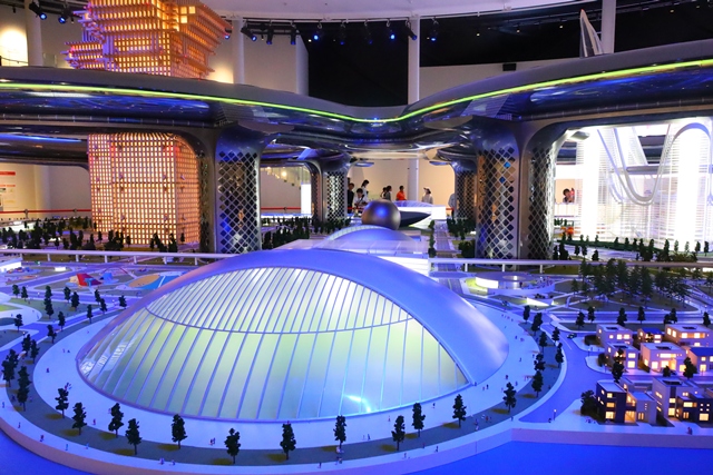 24m×15mもあるジオラマには、2050年の未来都市が精巧に再現されています。