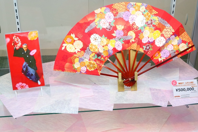 なかでも目を引くのが、なんと50万円の市川團十郎モデルの舞扇子!驚きの価格ですが、お手頃なクリアファイル(500円)など、手軽に買えるお土産もあります。