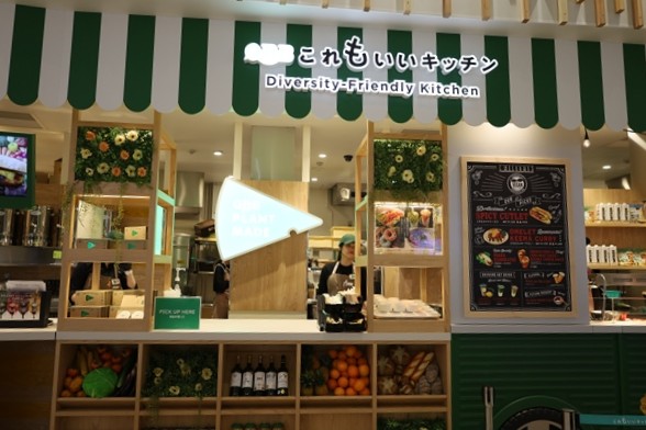 大阪ヘルスケアパビリオンに併設された「ミライの食と文化」エリアにある「QBBこれもいいキッチン」。ここは、健康と医療をテーマにした未来の食を体感できるテイクアウト専門店です。