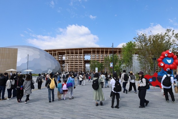 東ゲートゾーンは、地下鉄「夢洲駅」から直結する万博のメインゲート。日本を代表する企業や自治体のパビリオンが立ち並びました。