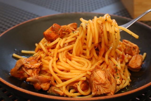 スパゲッティは、アルデンテや生パスタのようなもちもち感とは異なり、弾力のある、つるりとした食感です。