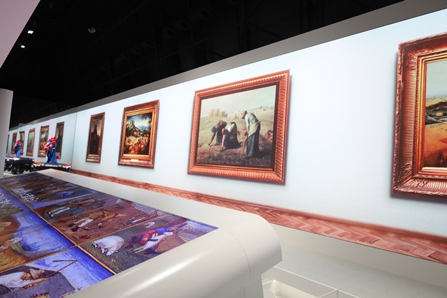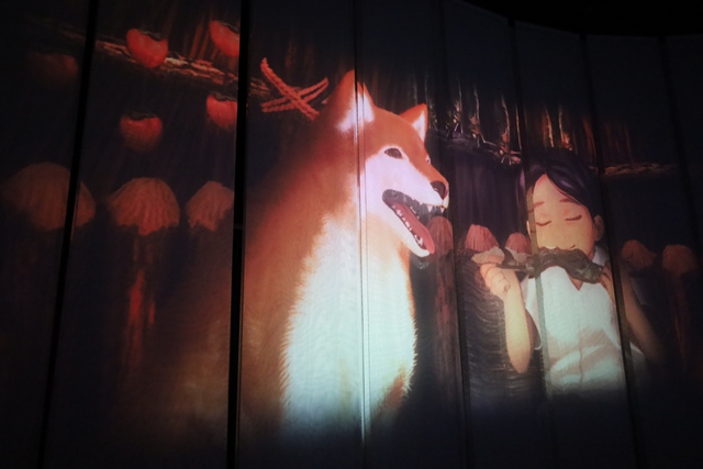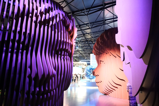 高さ5m、長さ92mの巨大な「カービングビジョン」で、人類の誕生からSociety 5.0の世界までを“幸せ”の視点から描く壮大な映像体験。