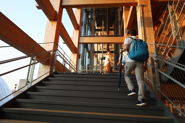大地の広場からエレベーターを使用せず、階段から再び大屋根リングの上へ。