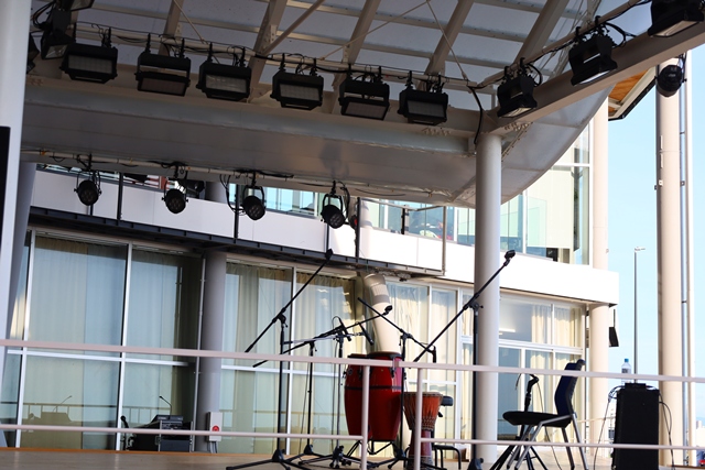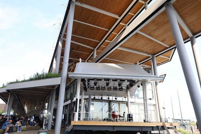 屋根付きの屋外ステージで、座席はなく立ち見形式。約290名が収容できるコンパクトな空間だからこそ、ゆったりと落ち着いた時間を過ごすことができます。他の会場に比べて人が少なく、穏やかな雰囲気が流れているのも大きな魅力です。