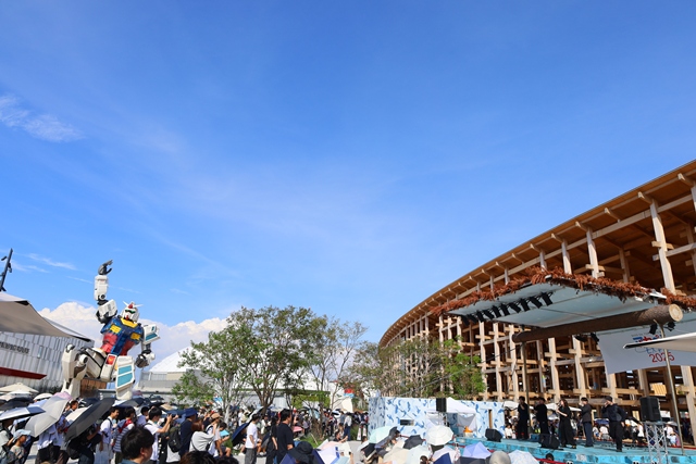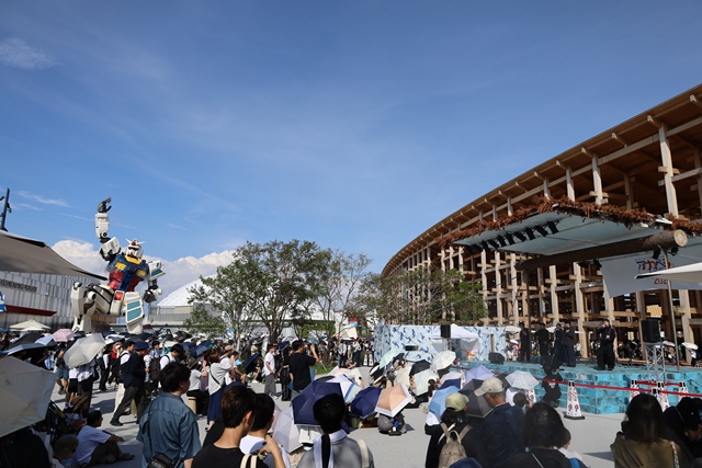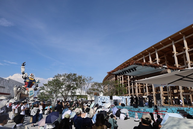 大阪・関西万博の西ゲートゾーンW08に位置するポップアップステージ西。会場のシンボルである大屋根リングを背に、等身大のガンダムの隣という絶好のロケーションに、訪れる人々を魅了するユニークなステージがあります。