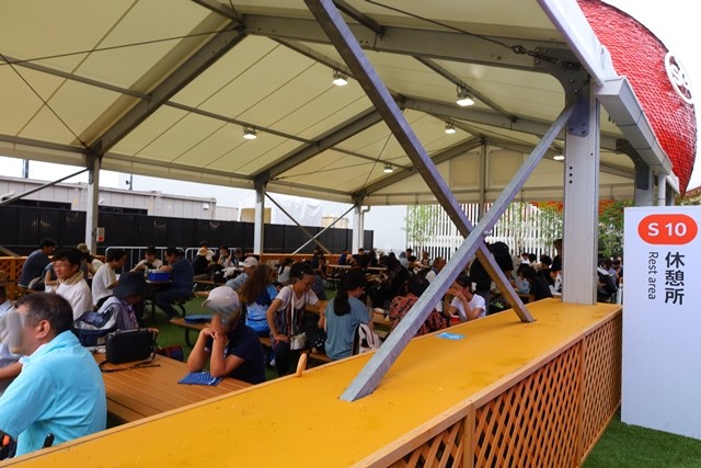 休憩所S10は、イタリア館に隣接する便利な場所にあります。たくさんのパビリオンを見て回った後、特にイタリア館を訪れた後には最適な休憩スポットです。