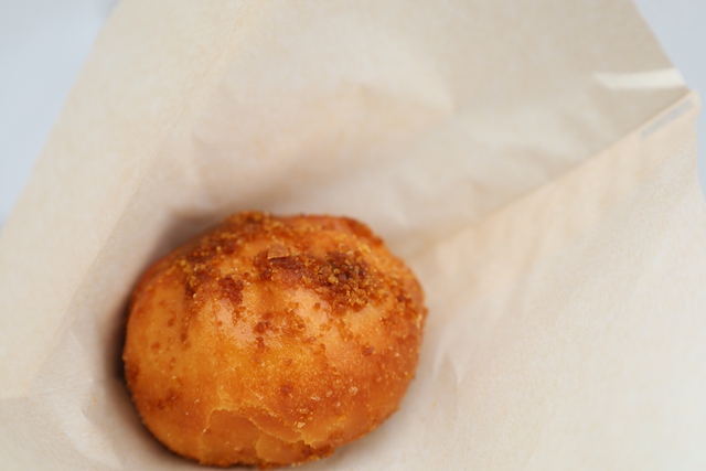 揚げたミニカスタード饅にパームシュガーがまぶしてあり、一口食べると中から温かくて濃厚なカスタードクリームがとろりとあふれ出します。
