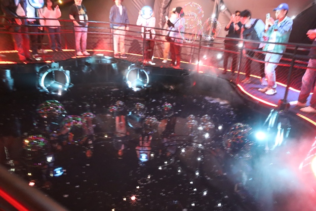 次のゾーンは、紫と青の照明が幻想的な「シャボン玉の空間」です。