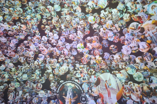 シャボン玉のように浮かぶ球体のアートは、「Augmented Human」を象徴するインスタレーション。