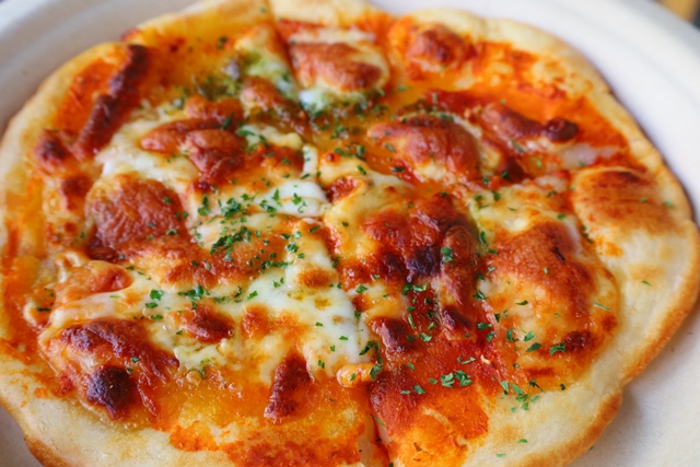 「EARTH TABLE~未来食堂~」にある「EARTH SWEETS」のピザは、米粉と塩麴を使用しており、驚くほどもちもちとした食感が魅力です。「マルゲリータジャパン」は、手頃な価格で楽しめる本格ピザです。