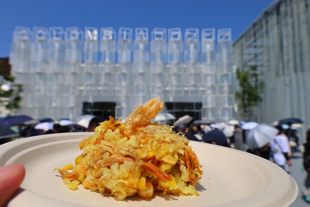コロンビアパビリオン併設のレストラン「Palenke」のテイクアウトメニュー「レチョナ」は、「世界の最も美味しい料理ランキング」で1位に輝いたこともあるコロンビアの伝統料理です。子豚のお腹に米や豆を詰めてじっくり焼き上げたローストポークは、ピラフのようなしっとりした食感と、控えめなスパイスが特徴。大屋根リングの下で、世界の味を楽しんでみてはいかがでしょうか。
