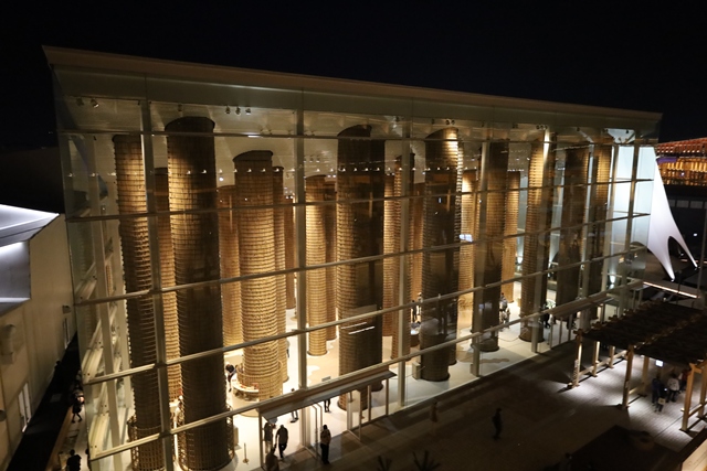 この柱は、UAEを象徴する木であるナツメヤシをモチーフにしています。ナツメヤシは、中東で栽培され、デーツの果実がとれる木。太く、力強く大地に根を張り、天空へと伸びていく姿は、UAEの発展を象徴しているようです。