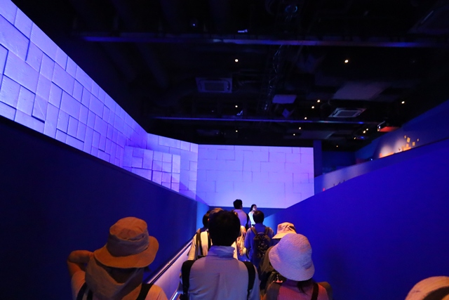 さらに奥へ進むと、壁一面の巨大モニターでPIXが案内する映像鑑賞が通路ではじまります。小さなアイデアがどのようにして産業や技術へと発展していったのか、イギリスの歴史をたどりながら紹介してくれます。