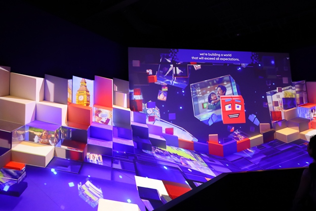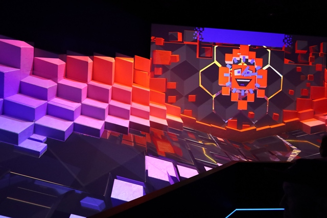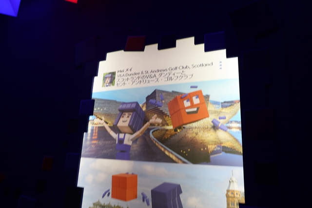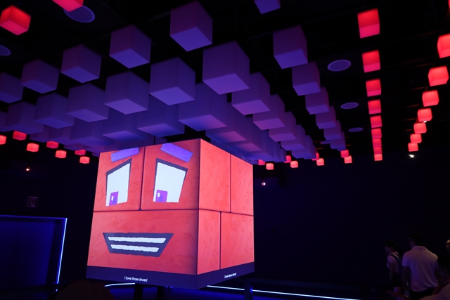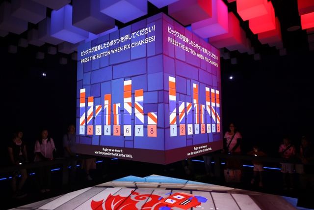 映像鑑賞の後は、来場者が参加できるインタラクティブなゲームルームが待っています。四角いモニターを囲んで、PIXの変身に合わせてボタンを押す簡単なゲームで、子供から大人まで楽しめます。参加者全員で力を合わせ、イギリスの国旗を完成させるというゲームは、会場全体の一体感を生み出し、盛り上がりを見せます。