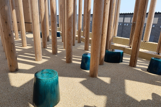 この木の柱にはNFCタグが取り付けられており、スマホをかざすと、その木が日本のどこから来たのか知ることができます。