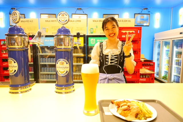大阪・関西万博の会場、西ゲートゾーンに位置する「ヴァイエンステファン オクトーバーフェスト」。ラストオーダーが21時で本場ドイツの雰囲気をゆったりと味わえる特別な場所です。