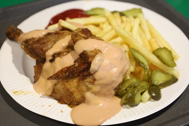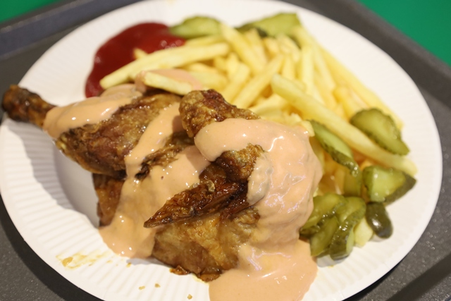 ローストチキンはオリジナルソースが絶妙で、小骨が多いものの食べ応えは十分。