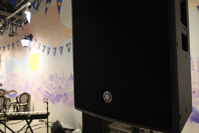 ヤマハのスピーカーから流れるBGMは、夜になると心地よい雰囲気に変わり、ゆったりとした時間を過ごせます。