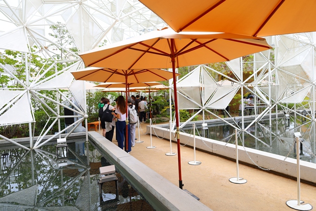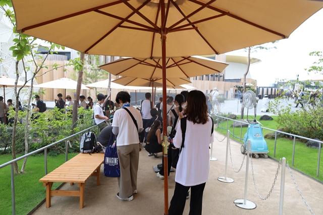 列に並んでいる間も、来場者への配慮が随所に感じられます。日差しを遮る工夫や、休憩用の椅子、ミストファンが設置されているだけでなく、清潔なおしぼりまで提供される心遣いには感動しました。約30分間の体験ツアーは、写真・動画の撮影もOKなのが嬉しいポイントです。
