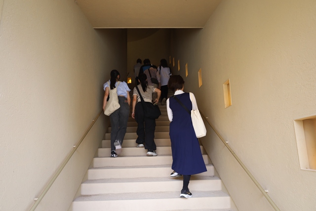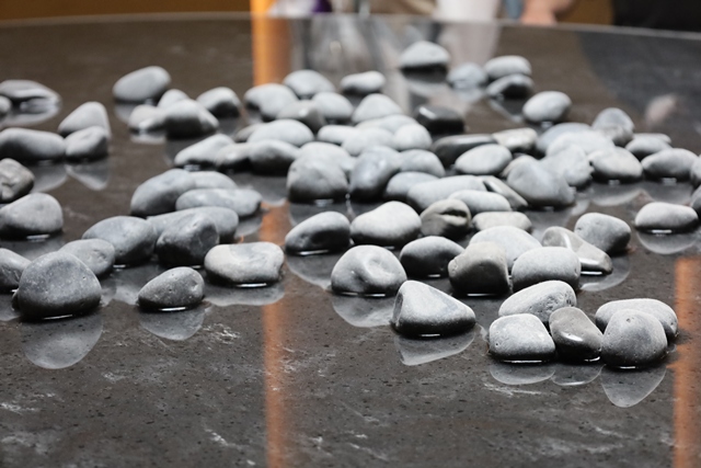 水と光と石が配された静かな空間で、これまでの体験を振り返り、心を落ち着かせることができます。