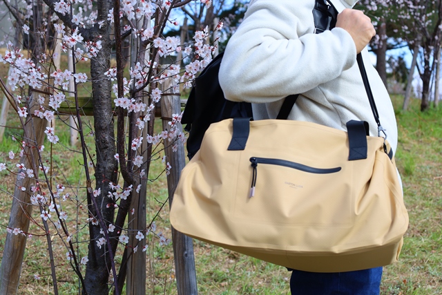 私は今回、バックパックを背負い、肩からこのダッフルを下げてみましたが、驚くほどしっくりきました。