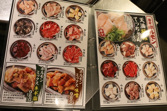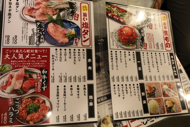 メニューは、塩タン、赤肉、鶏・豚、生もの、キムチ・ナムル、サラダ、野菜一品と豊富に揃っており、特に国産ホルモンのラインナップが充実しています。