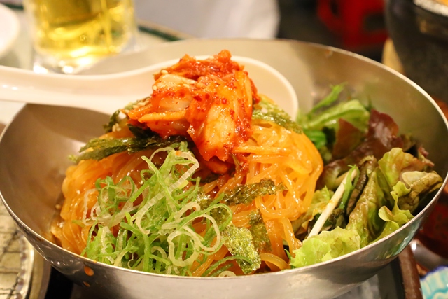 そして、ここで普通なら「冷麺」をオーダーするところですが、スタッフの方から「ビビン麺」も美味しいということを聞き「ビビン麺(968円)」をオーダーしました。つるりとした麺が甘さとほどよい辛さ、海苔の甘み、ネギの辛み、キムチの甘辛さが絶妙に絡み合い、最高の〆になりました。