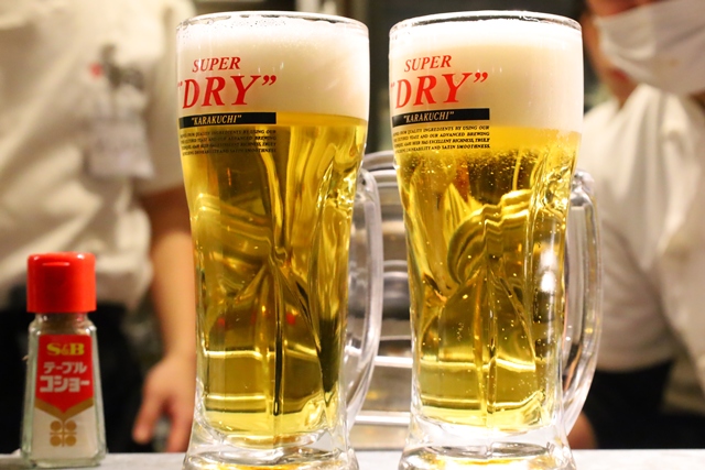 まずは生ビール(アサヒスーパードライ)で乾杯!安定の美味しさです。