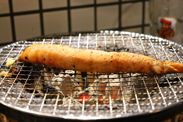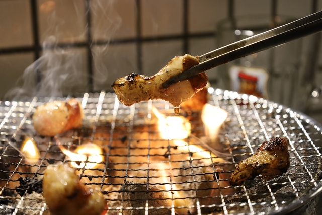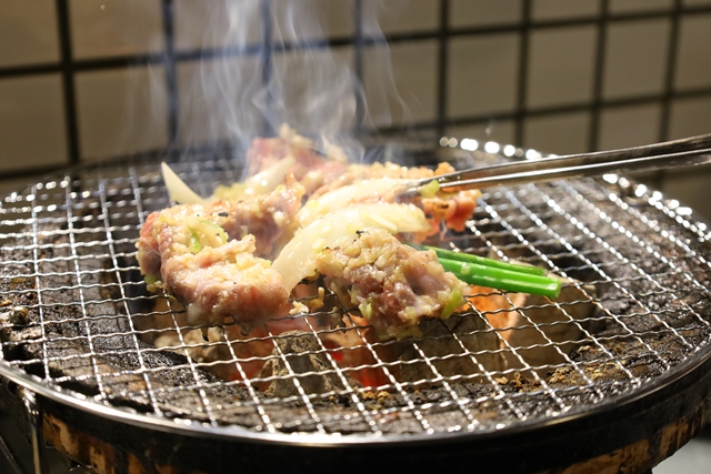 目の前には、雰囲気たっぷりの「かんてき(七輪)」。炭火の遠赤外線で焼き上げる本格スタイルです。