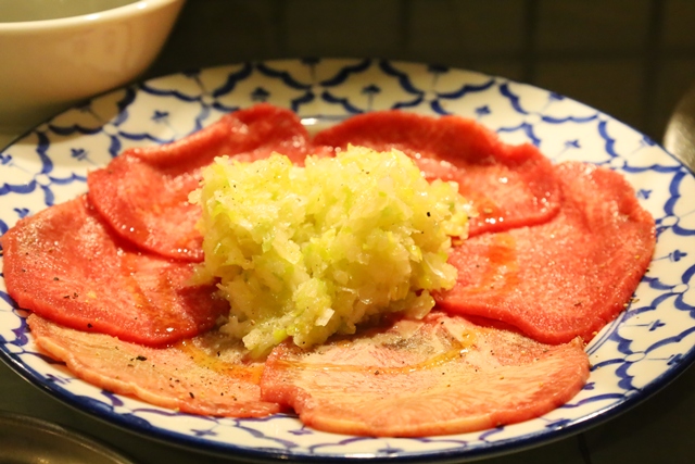 どか盛り ネギ塩タン(1,320円)美しい薄切りタンの真ん中にネギがたっぷり!