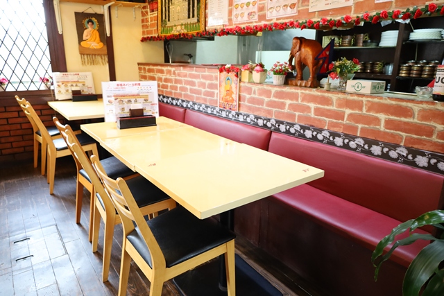 店内はテーブル席が並び、ゆったりと食事を楽しめる空間です。