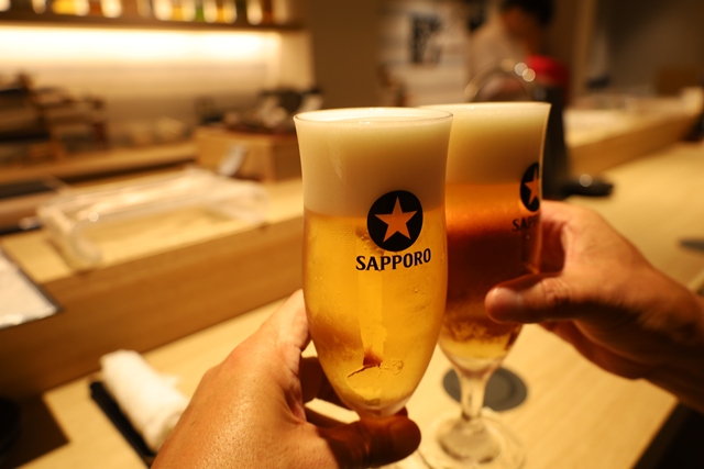 サッポロ黒ラベル生ビール 。まずは、冷えた生ビールで乾杯。これから始まる美食の旅に、期待が高まります。