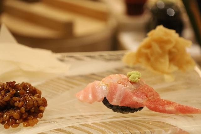 抜群のパフォーマンスで提供され、見た目にも美しい一貫。