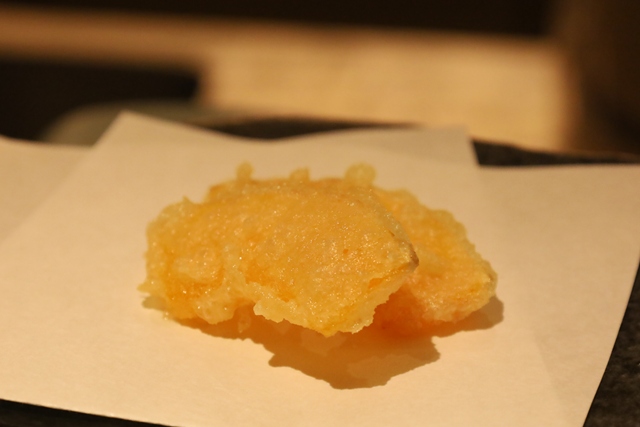 バターナッツカボチャの天ぷら。その名の通り、バターのような風味と豊かな甘み。かぼちゃの天ぷらがこんなに美味しいとは驚きでした。