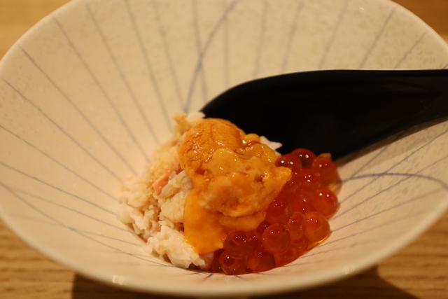 かにイクラウニの小丼。贅沢な食材が宝石のように輝くミニ丼。