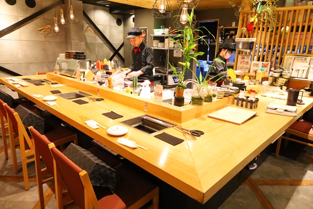 1階は職人の華麗な包丁さばきを目の前で楽しめるカウンター席、2階にはゆったりとしたテーブル席や個室も完備。